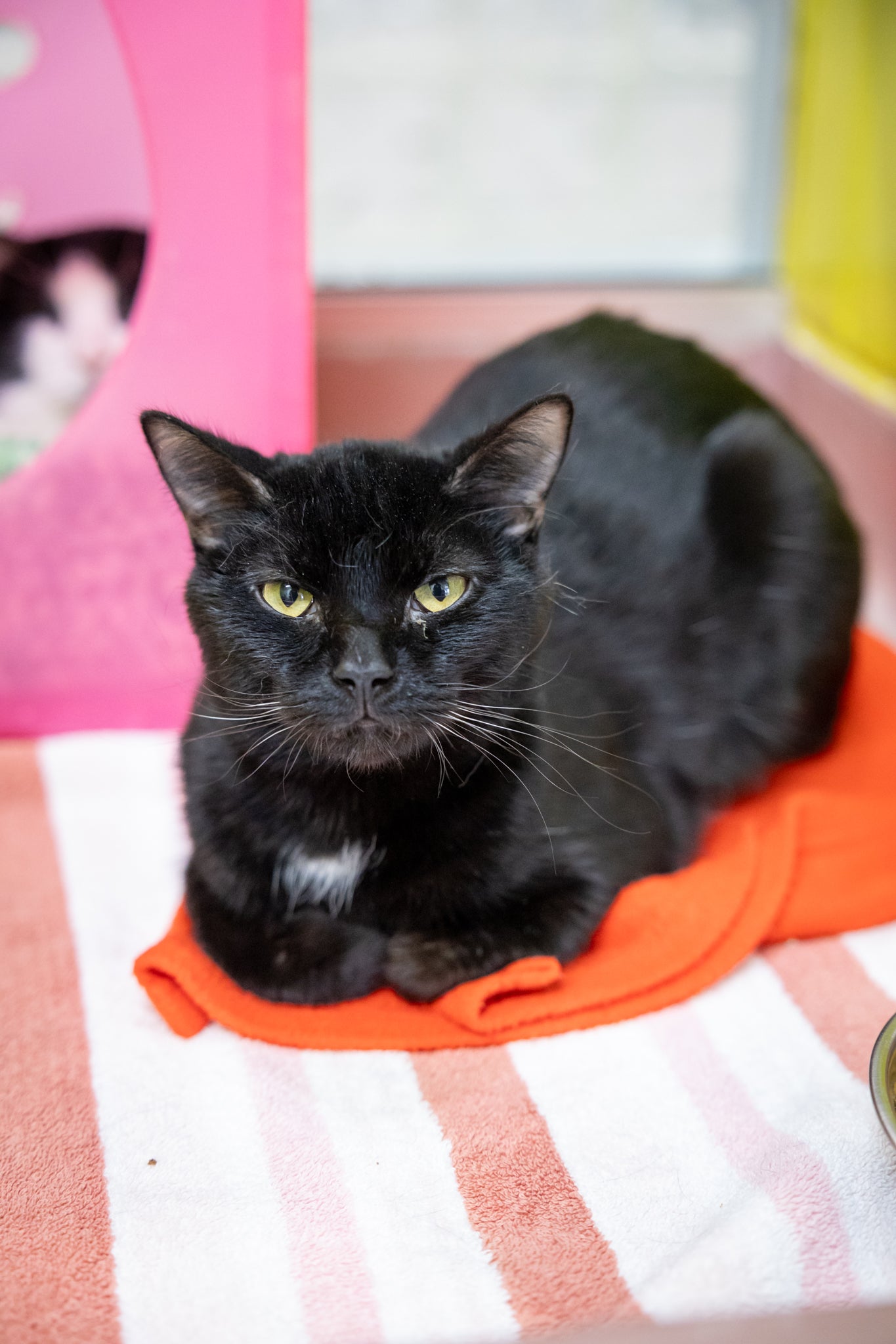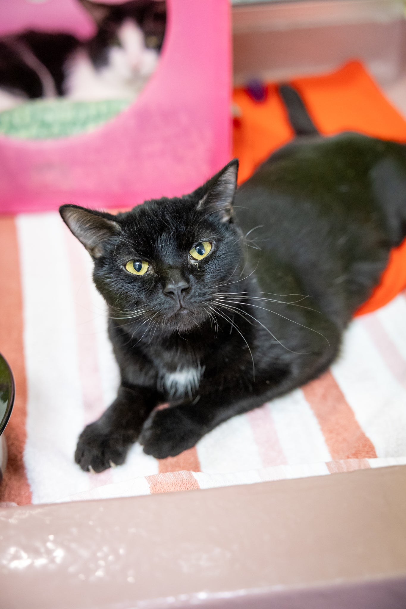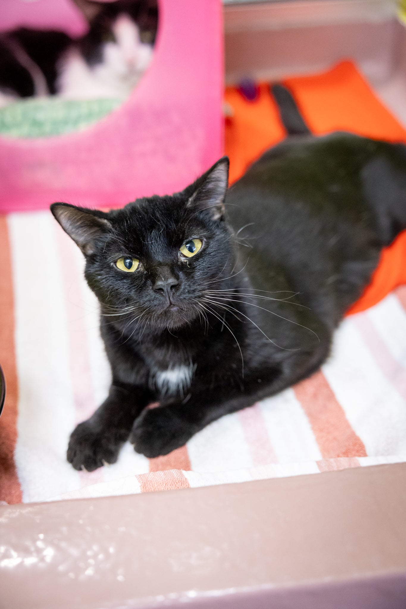 He loves gentle pets, quiet affection, and curling up in warm, cozy spots where he can feel secure and relaxed. Bagheera is the kind of cat who leans into comfort and connection, finding joy in simple moments of closeness and calm companionship.