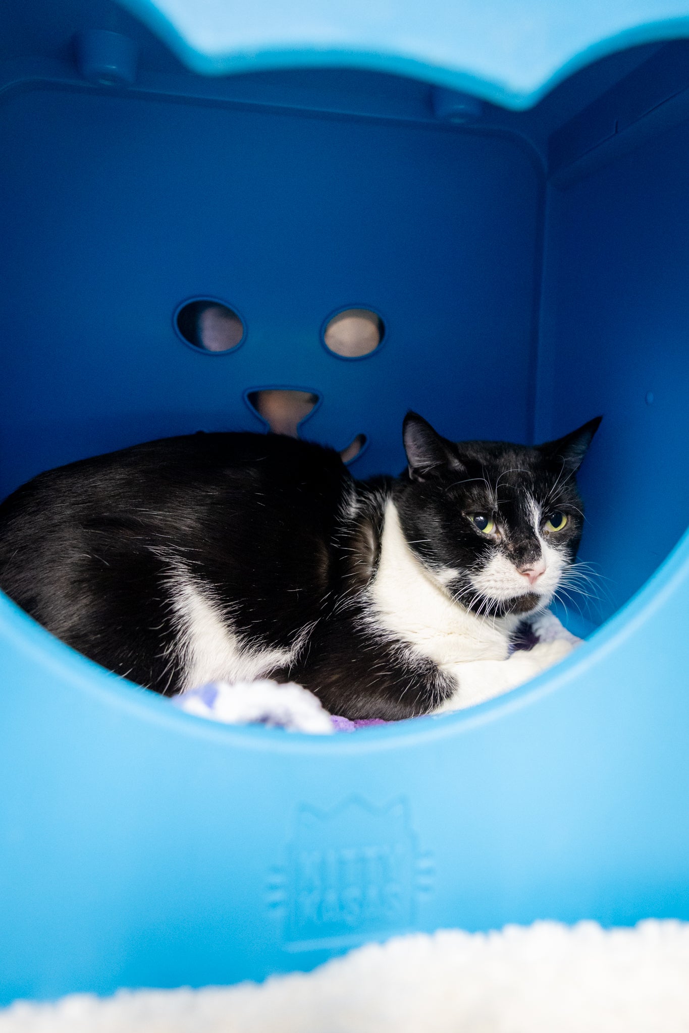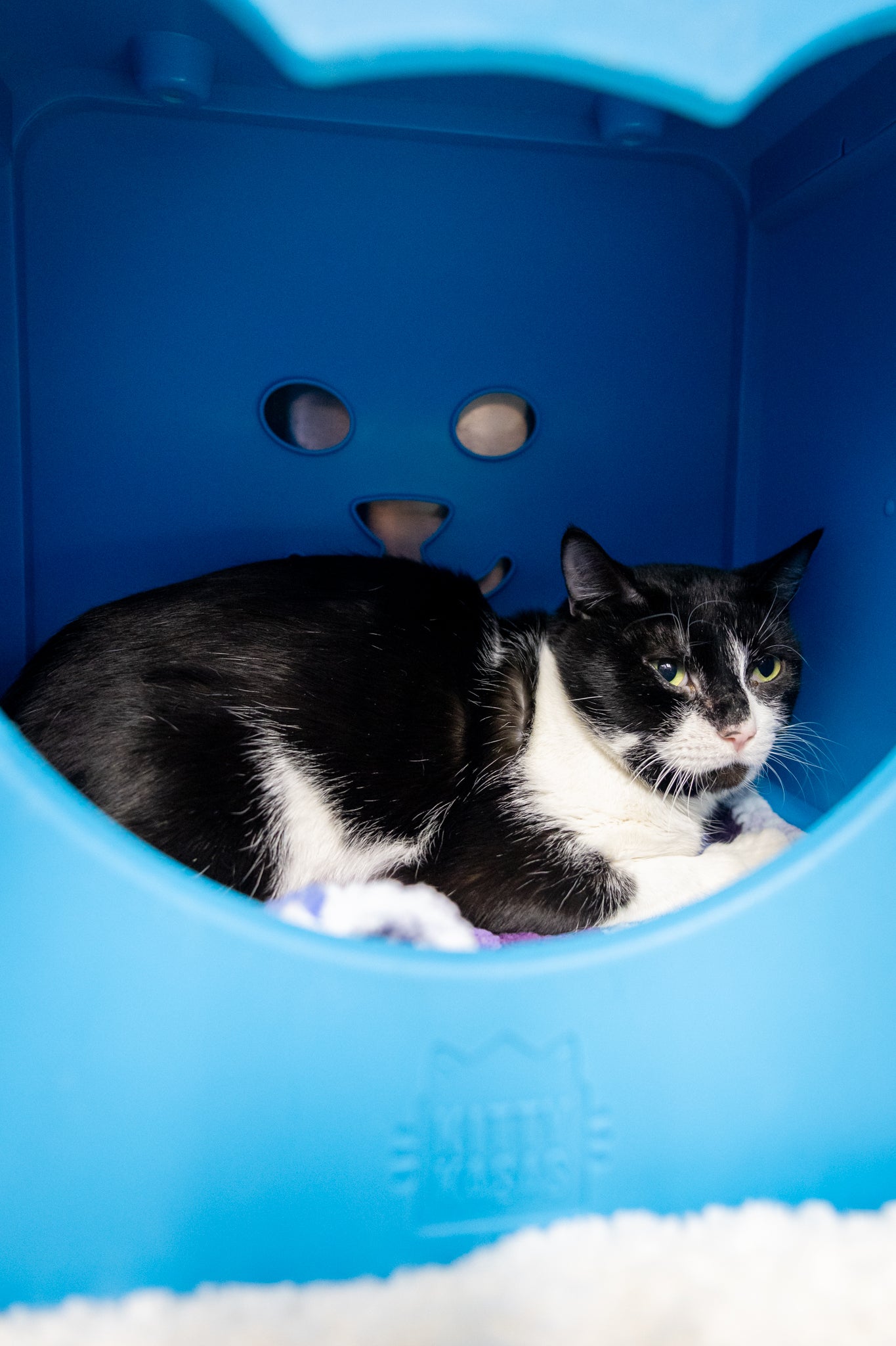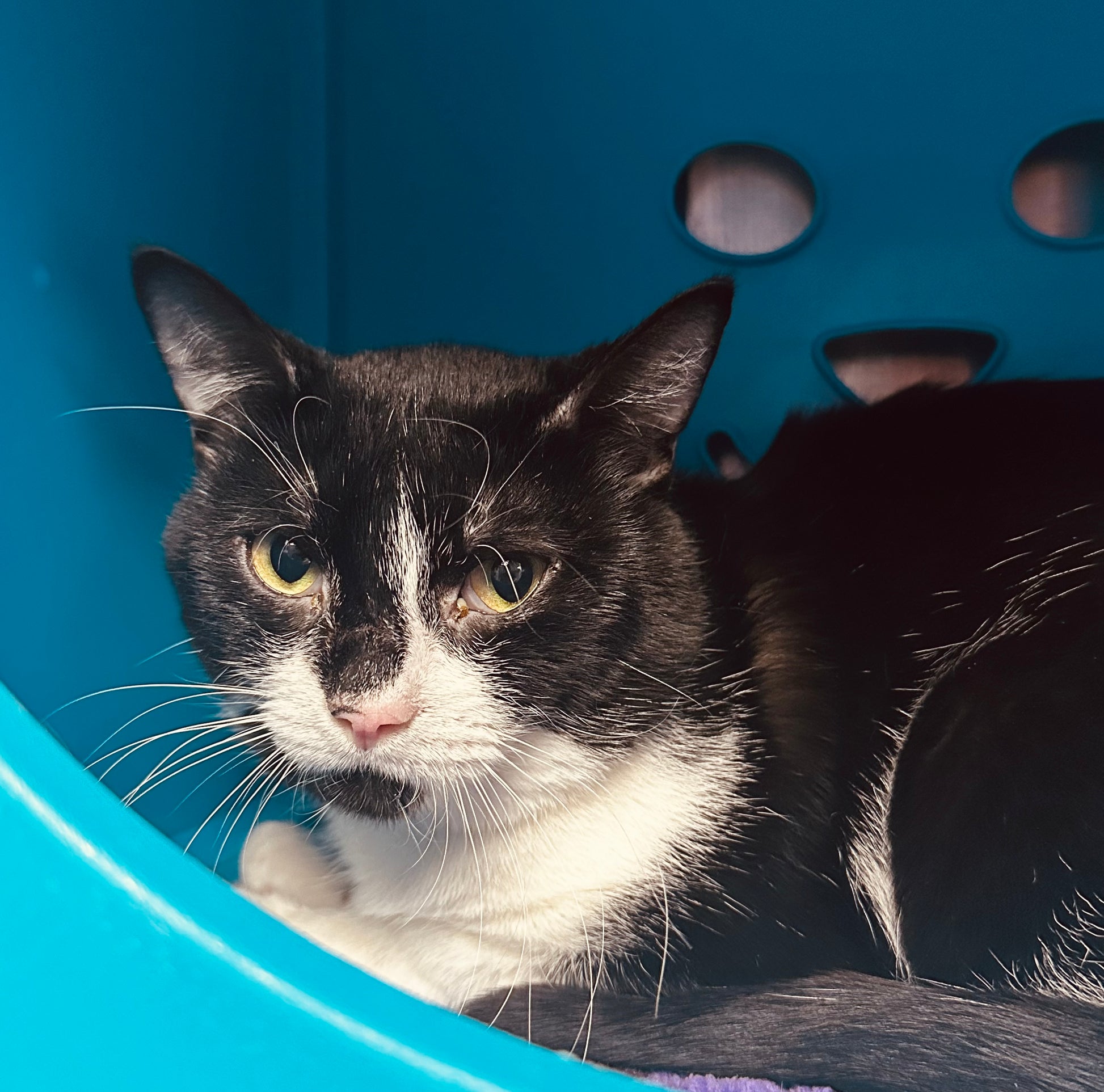 Flint is a very, very nervous kitty who needs time, patience, and a gentle environment to feel safe. New situations can be overwhelming for him, and he benefits from calm routines, quiet spaces, and adopters who understand that trust takes time.