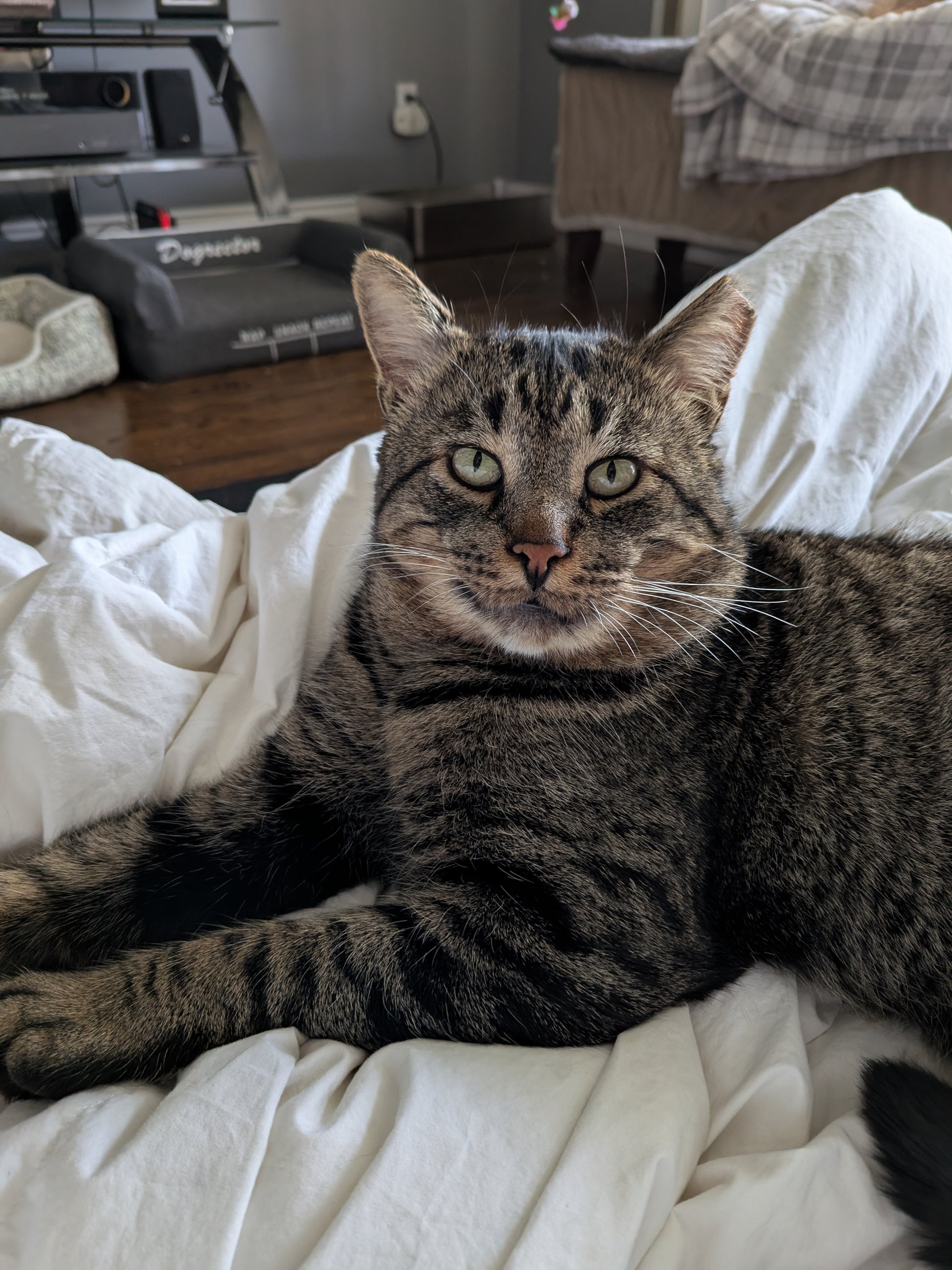 He does take some time to warm up in new situations, but once he feels settled and safe, Freddy reveals his true self: a major cuddle bug who loves affection on his own terms. He’s very good at communicating his boundaries and will let you know when he’s had enough, making him a wonderful match for adopters who respect feline cues.
