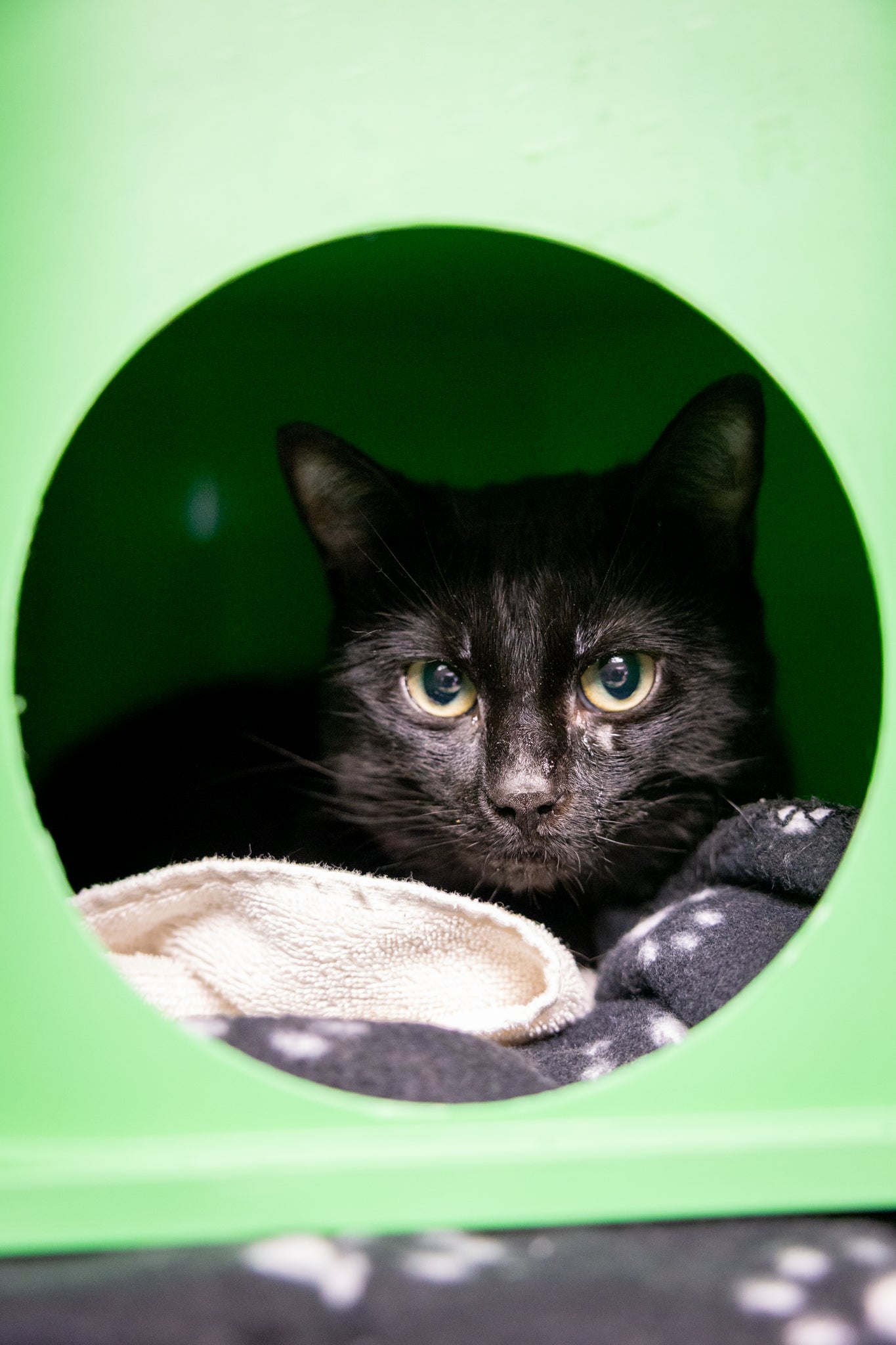 Gnocchi will do best starting out confined to a small, quiet room where he can gradually get used to the sounds and routines of his new environment without feeling overstimulated. With patience, consistency, and calm care, he can slowly build confidence and begin to explore more of the home at his own pace.