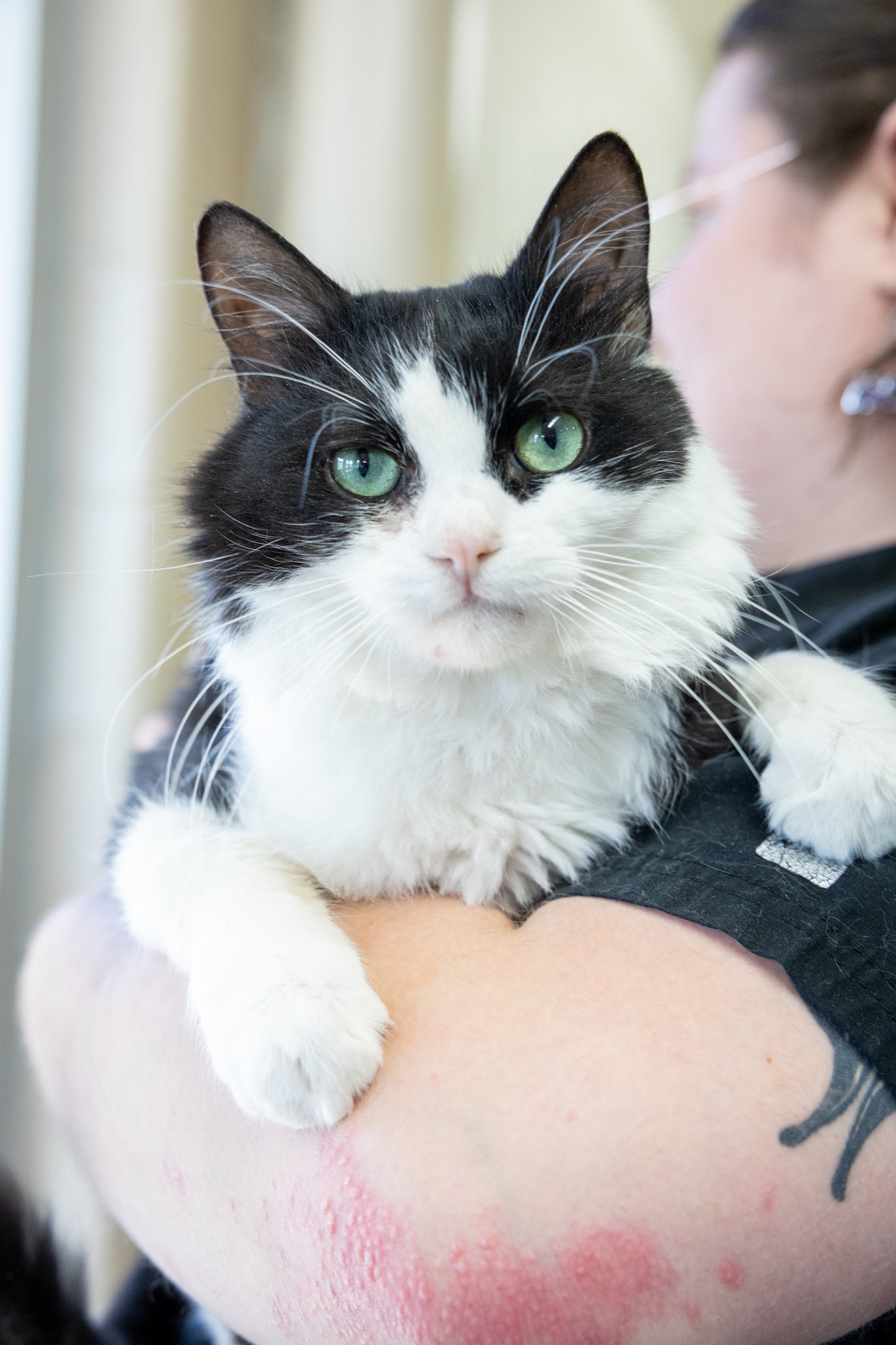 Moxy came in with some GI issues and chronic weepy eyes and will need to stay on Feline Fortiflora ongoing to help keep his digestive system balanced and his immune system strong. A consistent diet, continued use of probiotics, and a calm, low-stress environment will go a long way in supporting his GI health.
