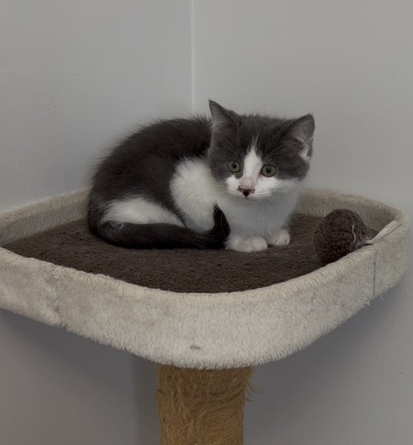 Ranch is a timid but gentle kitten who is slowly adjusting to life with people. She can be reserved at first, but with time and patience, her sweet nature begins to show. Ranch benefits from quiet surroundings and a steady routine that helps her feel safe.