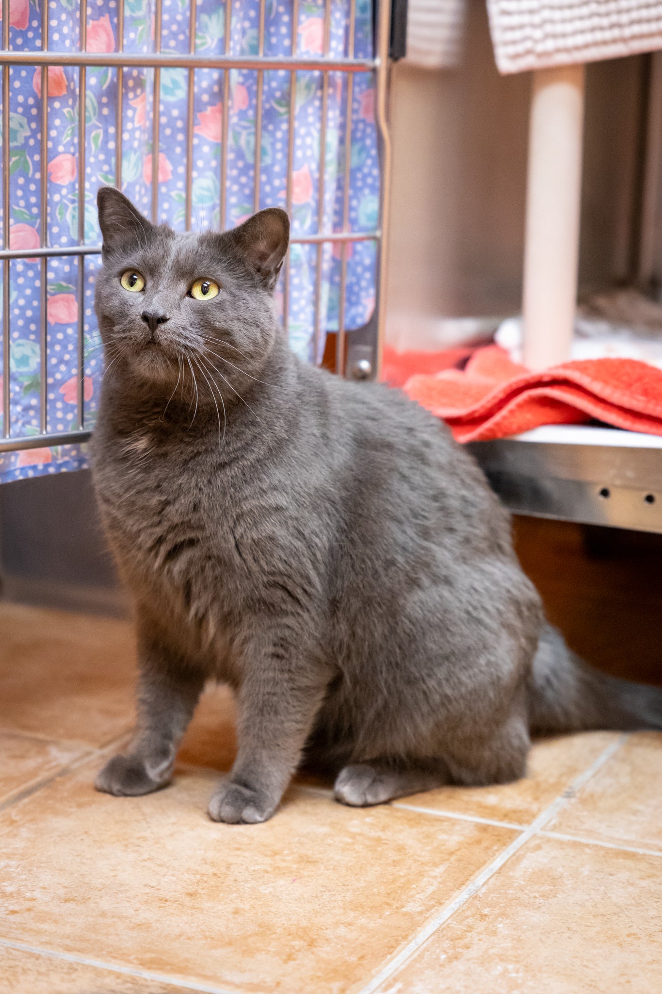 As he settles in, Ruffles enjoys attention, soft pets, and being near his people. He would do well in a calm, understanding home that’s happy to give him a moment to adjust before he shows just how loving he can be.